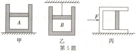 (2)如图丙所示,光滑水平面上放有一质量为$M$的汽缸,汽缸内放有一质量为$m$的可在汽缸内无摩擦滑动的活塞,活塞横截面积为$S$。现用水平恒力$F$向右推汽缸,最后汽缸和活塞达到相对静止状态,求此时缸内封闭气体的压强$p$。(已知外界大气压为$p_0$)