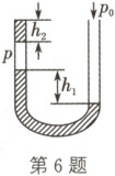 6.B 解析:选右边最高液面为研究对象,右边液面受到向下的大气压强$p_0$,在相同高度的左边液面受到液柱$h_1$向下的压强和液柱$h_1$上面气体向下的压强$p$,则$p + h_1 = p_0$,解得$p = p_0 - h_1$,选项B正确,ACD错误。