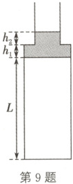 9.解:当所有水银刚好全部被压入细管内时,水银柱的长度$h_3 = \frac{S_1h_1}{S_2} + h_2 = 6 cm$,此时气体的压强$p = p_0 + p_{h3} = 82 cmHg$。