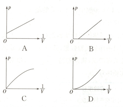 (3)若橡胶套内的气体不可忽略,移动柱塞,多次记录注射器上的体积刻度$V$和压力表读数$p$,绘出的$p - \frac{1}{V}$图像可能为