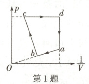 1. (2025·湖北黄冈模拟)一定质量的理想气体经历一系列状态变化,其$p - \frac{1}{V}$图线如图所示,变化顺序为$a \to b \to c \to d \to a$,图中$ab$线段延长线过坐标原点,$cd$线段与$p$轴垂直,$da$线段与$\frac{1}{V}$轴垂直。气体在此状态变化过程中,下列说法正确的是 (