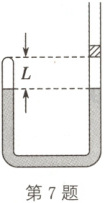 (2)$p_1=(75+5)cmHg=80cmHg$,设加入高为x的水银柱,在90℃时会报警,由理想气体状态方程$\frac{p_1V_1}{T_1}=\frac{p_3V_3}{T_3}$,代入数据,解得$x=8cm$或$x=-58cm$(舍)。