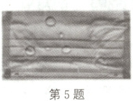 5.D 解析:图中水滴在口罩表面呈收缩状态,可知,照片中的口罩和水滴发生了不浸润现象,选项 A 错误;由于图中水滴呈扁球状,则表面层内分子之间表现为引力,即照片中水滴表面分子比水滴的内部稀疏,选项 B 错误;表面张力表现为引力效果,水珠呈扁球状是因为表面张力方向与液面相切,选项 C 错误;照片中的口罩和水滴发生了不浸润现象,照片中水滴呈扁球状是液体表面张力和重力共同作用的结果,选项 D 正确。