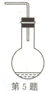 5.D 解析:瓶塞跳出的过程中瓶内的气体对外做功,气体体积迅速膨胀,由于该过程的时间比较短,可知气体来不及吸收热量,根据热力学第一定律可知,气体的内能减小,则温度降低,由理想气体状态方程$\frac{pV}{T} = C$可知,气体压强减小,选项D正确。