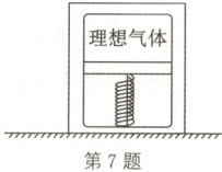 7.D 解析:由题可知,绳子断开,活塞最终静止后的位置高于初始位置,但弹簧仍处于压缩状态,$E_{p}$的一部分转化为活塞的重力势能、气体的内能,剩余部分仍为弹簧的弹性势能,选项D正确,ABC错误。