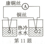 11.BC 解析:金属铜有固定的熔点,是晶体,选项A错误;该实验遵循能量守恒定律,最终将达到热平衡,内能转化为电能,热水温度降低,冷水温度升高,选项BC正确;热水中减少的内能一部分转化为电能,一部分传递给冷水,转化效率低于100%,所以该实验符合能量守恒定律,也不违背热力学第二定律,选项D错误。