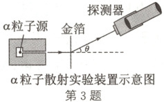 3. 如图所示的实验装置为用 α 粒子轰击金箔,研究 α 粒子散射情况的实验装置。关于 α 粒子散射实验,下列说法正确的是 (