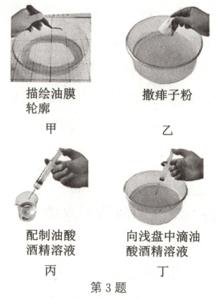 3. (2025·河南濮阳市第一中学期中)如图是“用油膜法估测油酸分子的大小”实验的部分操作步骤。