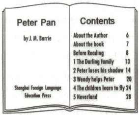 Peter Pan is a famous children’s story. English writer J. M. Barrie (1860—1937) wrote it. All children grow up,except(除了) one—Peter Pan. Peter Pan loses(丢失) his shadow (影子). When he is looking for his shadow,he flies into Wendy’s room. Wendy later becomes his best friend. The following story tells how these two meet each other. Let’s read together.