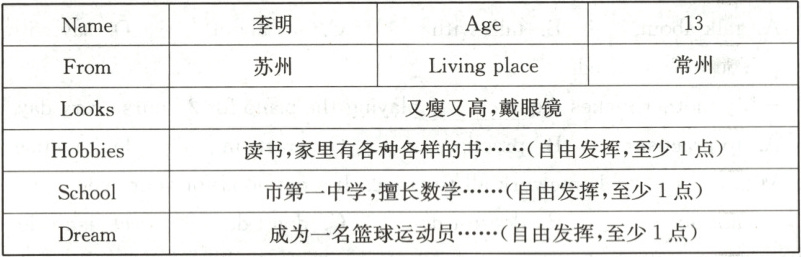 Hello, everyone! My name is Li Ming. I am 13 years old. I am from Suzhou, but now I live in Changzhou. I am tall and thin, and I wear glasses. I like reading very much. There are all kinds of books in my home, and I often read them in my free time. I study at No.1 City Middle School. I am good at Math and I often help my classmates with it. My dream is to be a basketball player. I often play basketball with my friends after school, and I hope I can play in the NBA one day. This is me. Thank you!