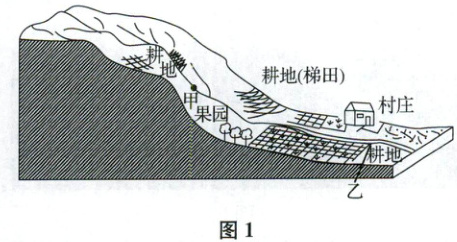(2024盐城期末)黄土高原某小流域内某村庄早期布局在河流沿岸。随着时间推移,村庄与河岸距离变大。读图1,完成1~