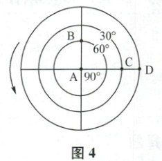 (3)A<B=C=D 地球自转角速度除极点为0外,其他各地均相同