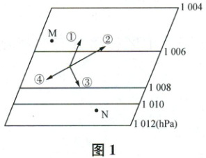 1 图中①②③④表示水平气压梯度力的是