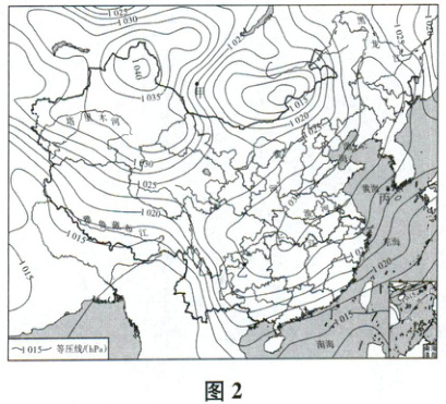 (2025 南通期中)图2为“某年11月9日6时亚洲局部区域海平面气压分布图”。读图完成3~4题。