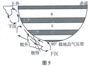 图5为“南半球大气环流示意图”。读图完成9~10题。