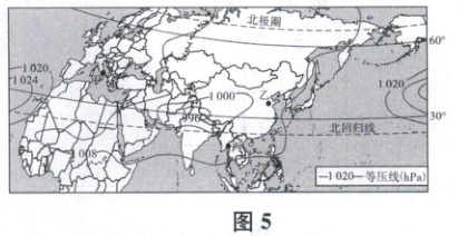 图 5 为“全球部分地区某月等压线分布图”。