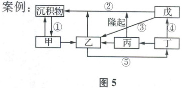 3. 岩石圈物质循环示意图有多种形式。参考案例图5,在确保科学性的前提下,设计一幅富有创意的图示,并准确判断图内内容。