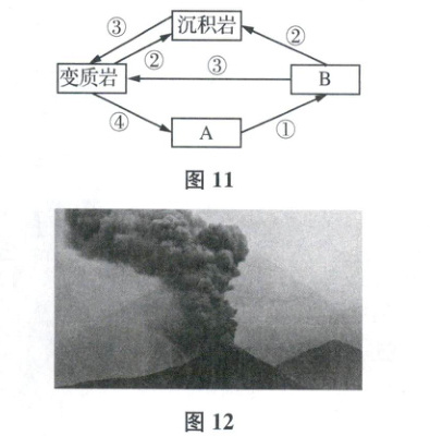 。(2) 图12中火山喷发形成的岩石按成因分类属于三大类中的