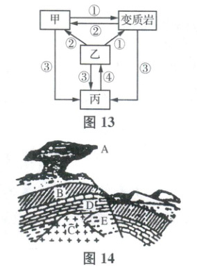 。(2) 写出图13中圈码所表示的地质作用名称:①