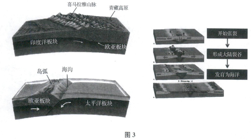 3. 珠穆朗玛峰高度达8848.86m,是全世界最高峰;马里亚纳海沟深度达11034m,是全世界最深的海沟。运用板块构造学说,解释其成因。