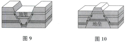2. 除华山外,结合图9、图10举例说明断层形成的地表形态。