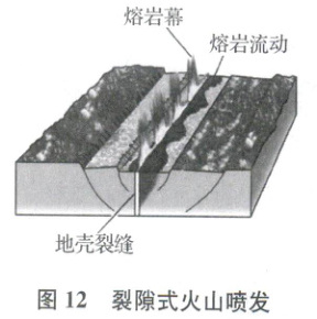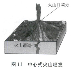 材料二 图11、图12分别示意火山喷发的两种类型。