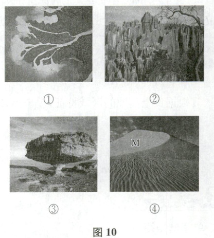 (2024 扬州期中)图 10 为“四种常见地貌景观图”。读图完成 7~8 题。