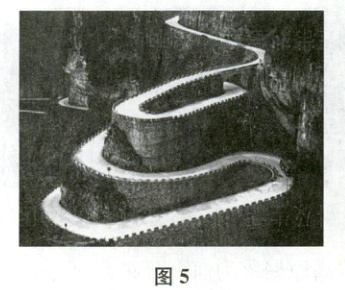 3. 图5中盘山公路走向呈“之”字形,分析选择这种方式的原因。