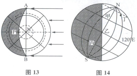(2)图13中,P点此时为午夜,再过