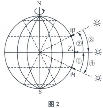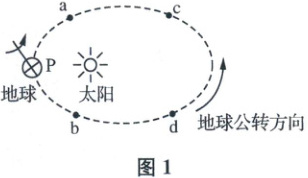 2 地球在公转轨道上P点时,大约相当于图2中的阶段