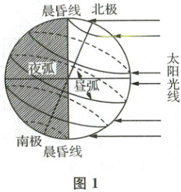 图 1 为“地球昼半球和夜半球图”。