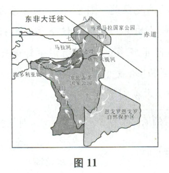 3. 从材料二可知,非洲动物大迁徙的路径在赤道南北两侧,结合材料说明12月到第二年的5月之间食草动物在塞伦盖蒂及每年的5—8月非洲动物大量北迁的原因。