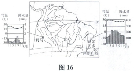 (2025扬州期中)图16为“南美洲某月近地面20℃气温曲线分布及利马、萨尔瓦多两地气候资料图”。读图完成4~6题。