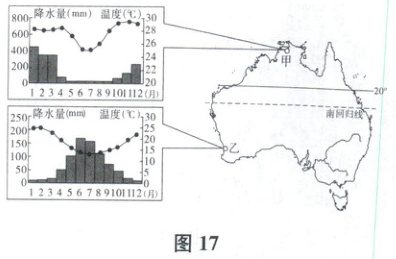 7. 比较甲、乙两地气候特点,叙述正确的是(