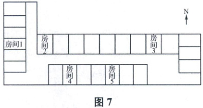 (3)小明提前了解到所住酒店房间可以观看日出和日落景观,于是决定选择能够看到日落的房间。入住时只有图7中5个房间可供选择。小明应选择房间
