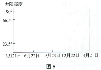 (5)在图5中,用折线图画出P点一年中正午太阳高度的变化情况。