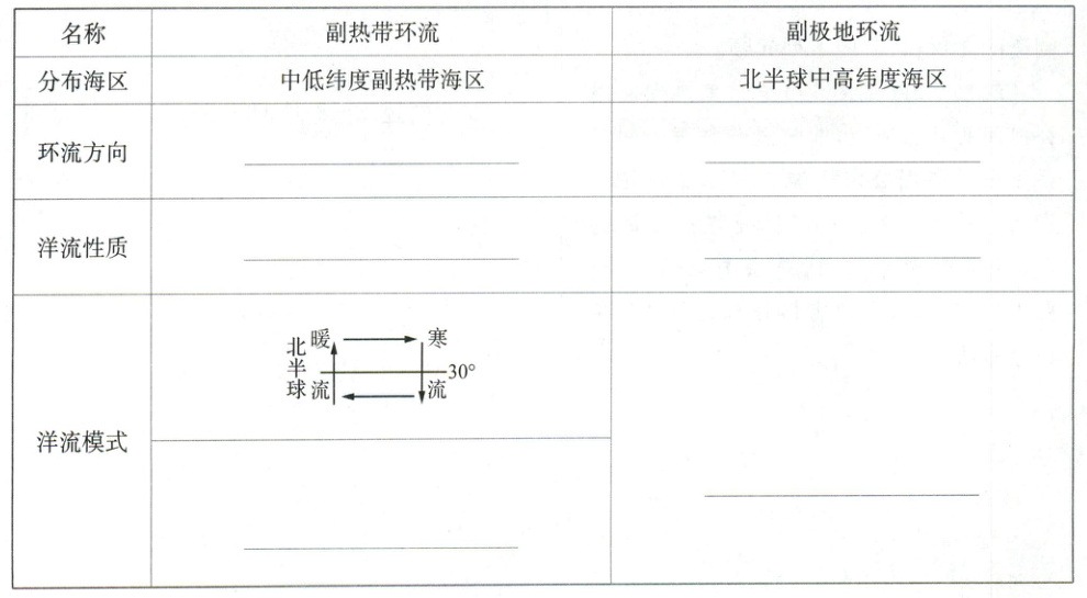 | 洋流性质 | 大陆东岸或大洋西岸:暖流。大陆西岸或大洋东岸:寒流 | 大陆东岸或大洋西岸:寒流。大陆西岸或大洋东岸:暖流 |