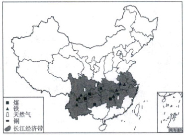 材料二 长江经济带东起上海,西至云南,覆盖 11 个省市,面积占全国的 21.4%,长江经济带上、中、下游区域差别显著。下图为“长江经济带地理位置和主要资源示意图”(如下图所示)。