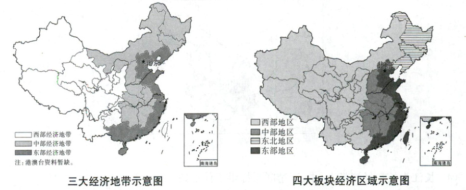 材料一 我国在“七五”期间,依据地理位置、经济建设条件和当时的经济技术水平所存在的地区差异等将全国划分为东部、中部和西部三大经济地带。在“十一五”期间,又将全国划分为东部、中部、西部和东北四大板块,以促进我国区域经济协调发展。