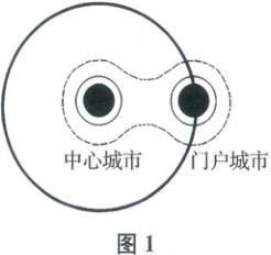 (2025南京六校联合体期末)双核结构是指在某个区域中由区域中心城市和港口门户城市及其连线构成的轴线,由此引领和推动所在区域发展的一种空间结构现象。双核结构城市广泛存在于我国沿海、沿江地区,如广州—深圳、北京—天津,其产业之间具有相互补偿和相互依赖的关系。图1为“双核结构简易图”(如下图所示),图2(见下页左栏上图)为“杭州—宁波双核结构示意图”。据此完成5~7题。