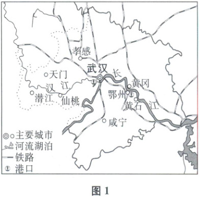 材料一 湖北省黄石市是武汉城市圈的副中心城市,有“青铜古都”“钢铁摇篮”“水泥故乡”之称。图1为“黄石市区位示意图”(如下图)。