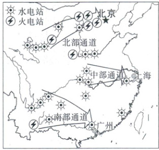 (1) 简析“西电东送”工程三大通道目的地大量输入能源的共同原因。