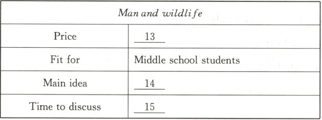 听第一篇短文,回答第13—15小题。请根据短文内容,选择正确答案,完成信息记录表。答题完毕,请等待“嘀”的信号,进入下一篇短文。
