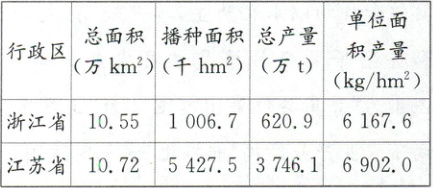 (2)与浙江省相比,江苏省粮食生产的优势自然条件有哪些?