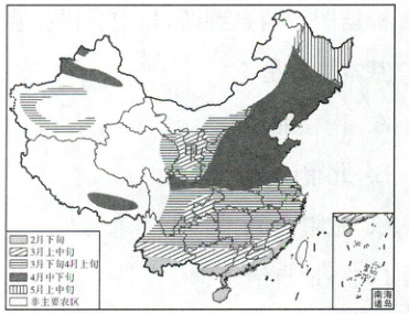 材料一 2022年1月4日,中共中央、国务院发布了关于做好2022年全面推进乡村振兴重点工作的意见指出:“坚持中国人的饭碗任何时候都要牢牢端在自己手中,饭碗主要装中国粮。”如图(见右栏上图)为中央气象台发布的“2022年全国春播期预测图”。
