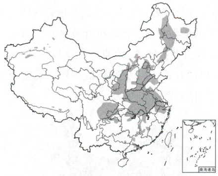 (2024扬州期中)耕地是粮食生产的命根子,没有耕地安全,就没有粮食安全。2024年“中央一号文件”强调严格落实耕地保护制度,健全耕地数量、质量、生态“三位一体”保护制度体系,落实新一轮国土空间规划明确的耕地和永久基本农田保护任务。下图为“我国耕地集中分布区图”。据此完成10~12题。