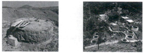 左下图为“西北水窖图”,右下图为“地头水柜图”。