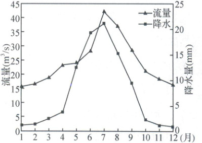 在干旱、半干旱地区,河流水资源主要用于工业、农业和生活用水,往往忽视了生态环境保护对水资源的需要,导致天然生态系统退化。格尔木河位于柴达木盆地,流域内水资源安全问题较为突出。下图示意格尔木河下游某水文站监测数据。据此完成6~7题。
