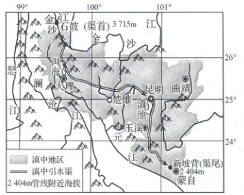 (2025南通期末)滇中地区干旱严重,2017年开始修建的引水工程是我国西南地区规模最大的水资源调配工程。该工程全长约664 km,主要以隧洞方式输水。如图(见右栏上图)为“滇中引水工程示意图”。据此完成3~5题。