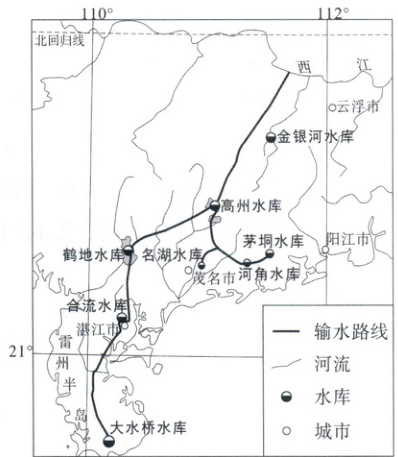 材料二 雷州半岛,一直受缺水问题困扰。2022年8月广东省实施了环北部湾广东水资源配置工程,该工程从西江干流取水,调水至雷州半岛南部,供水范围覆盖茂名、湛江等地,结束了当地居民长期饮用地下水的历史。